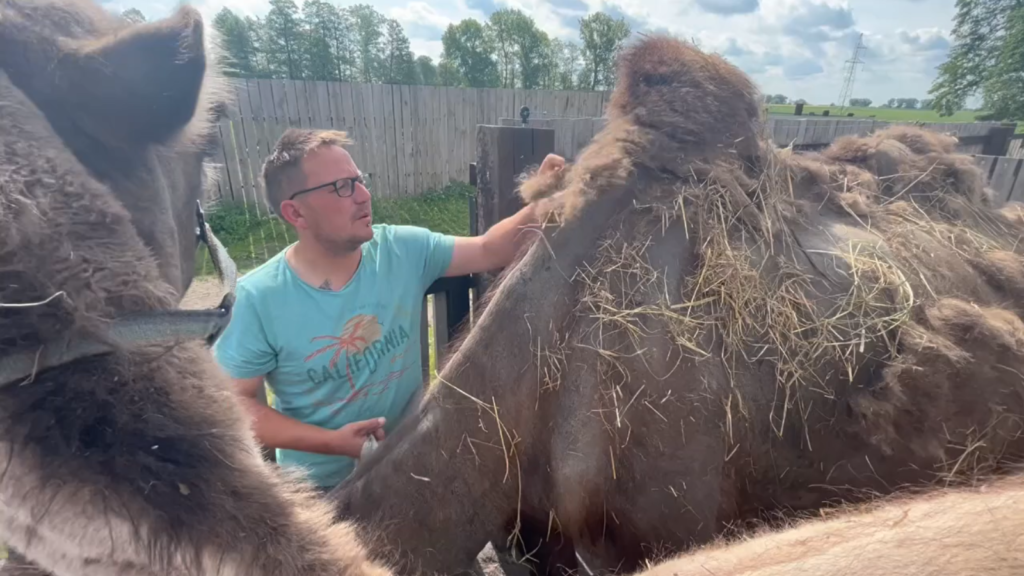 Naszemu wspaniałemu wielbłądowi Jaśkowi trafiło się dziś skubanko. Zostaliśmy poproszeni o dostarczenie wielbłądziej wełny, która w celach dydaktycznych zostanie przekazana na zajęcia dla dzieci. Będą one porównywać wełnę wielbłądzią, owczą i lamią. Spróbują znaleźć podobieństwa i różnice. Samo skubanie Jaśka w żaden sposób mu nie przeszkadza. A jest to dla niego przyjemny zabieg, po którym będzie mu chłodniej. Normalnie to pozwalamy naszym wielbłądom wylinieć samodzielnie. No ale w tym przypadku jest wyższy cel. A przy okazji Jasiek ma darmowe spa. Jak widać na filmiku nasze wielbłądy linieją w różnym tempie. Big Mama ma już letnie futerko a maluch z kolei jest całkiem kudłaty. Młode wielbłądy potrzebują nosić dłużej ciepłą sierść. Przy okazji chcielibyśmy Was zaprosić w weekend do Benkowa. Przypominamy, że jesteśmy czynni od 10 do 16.