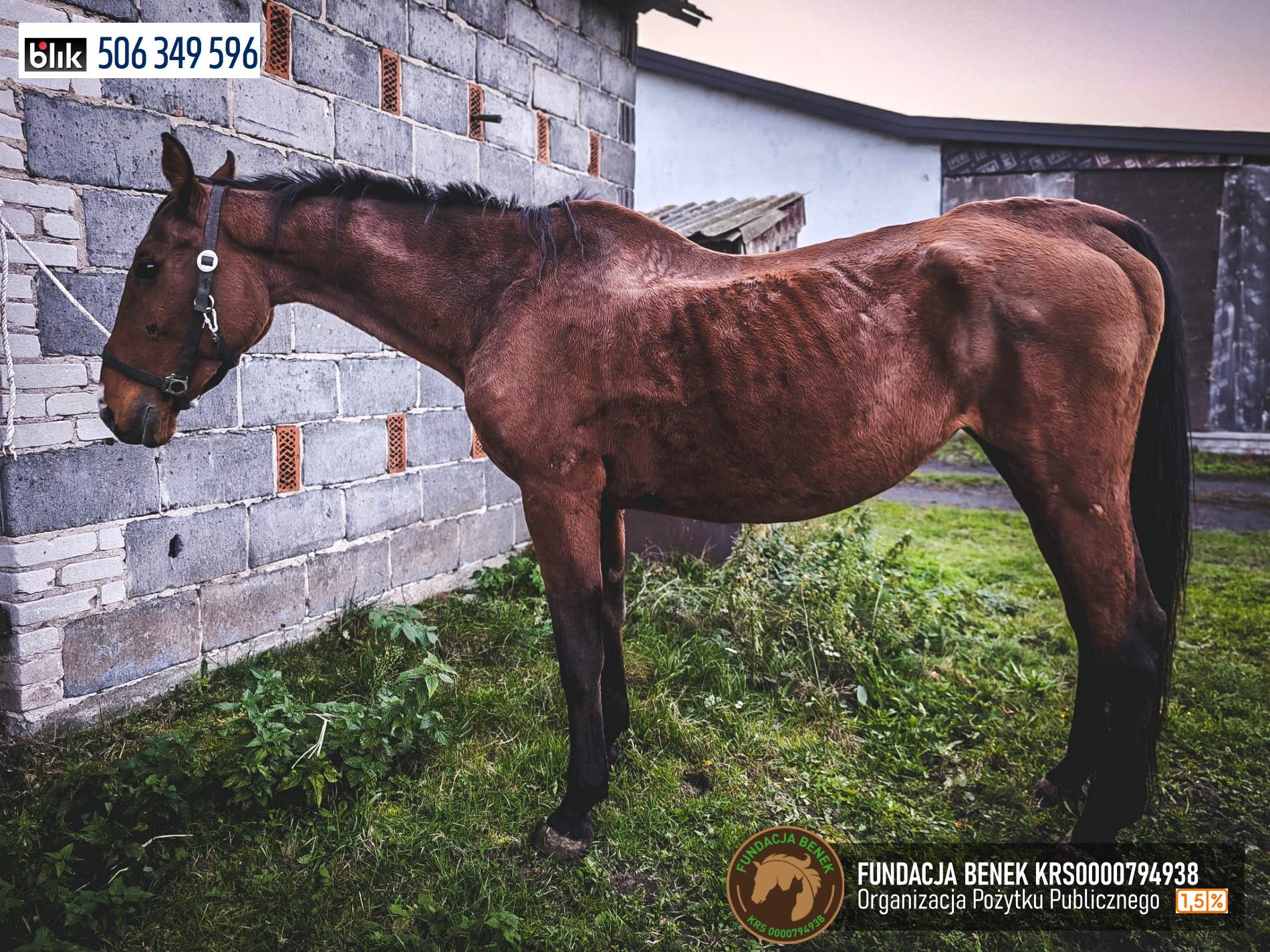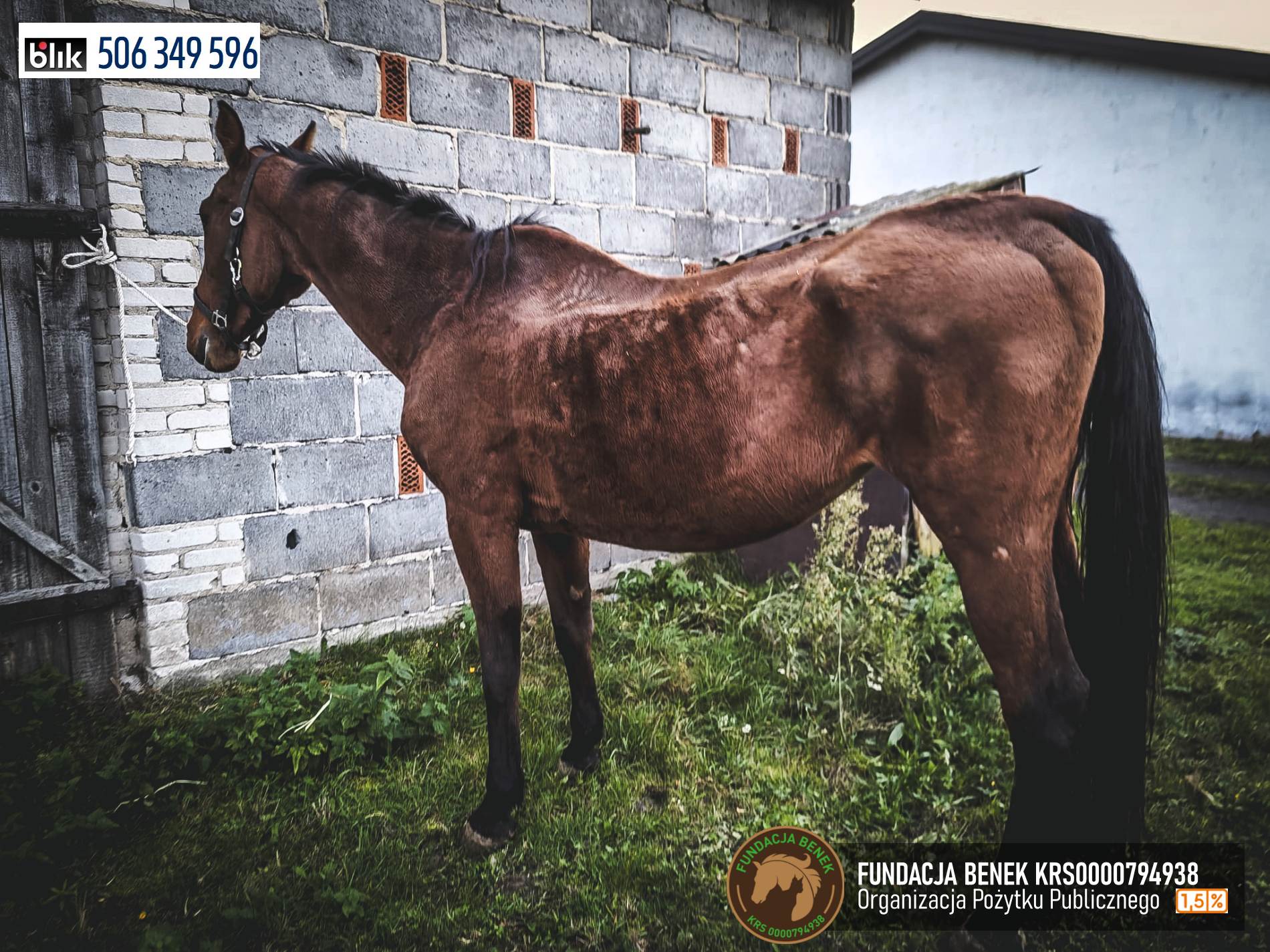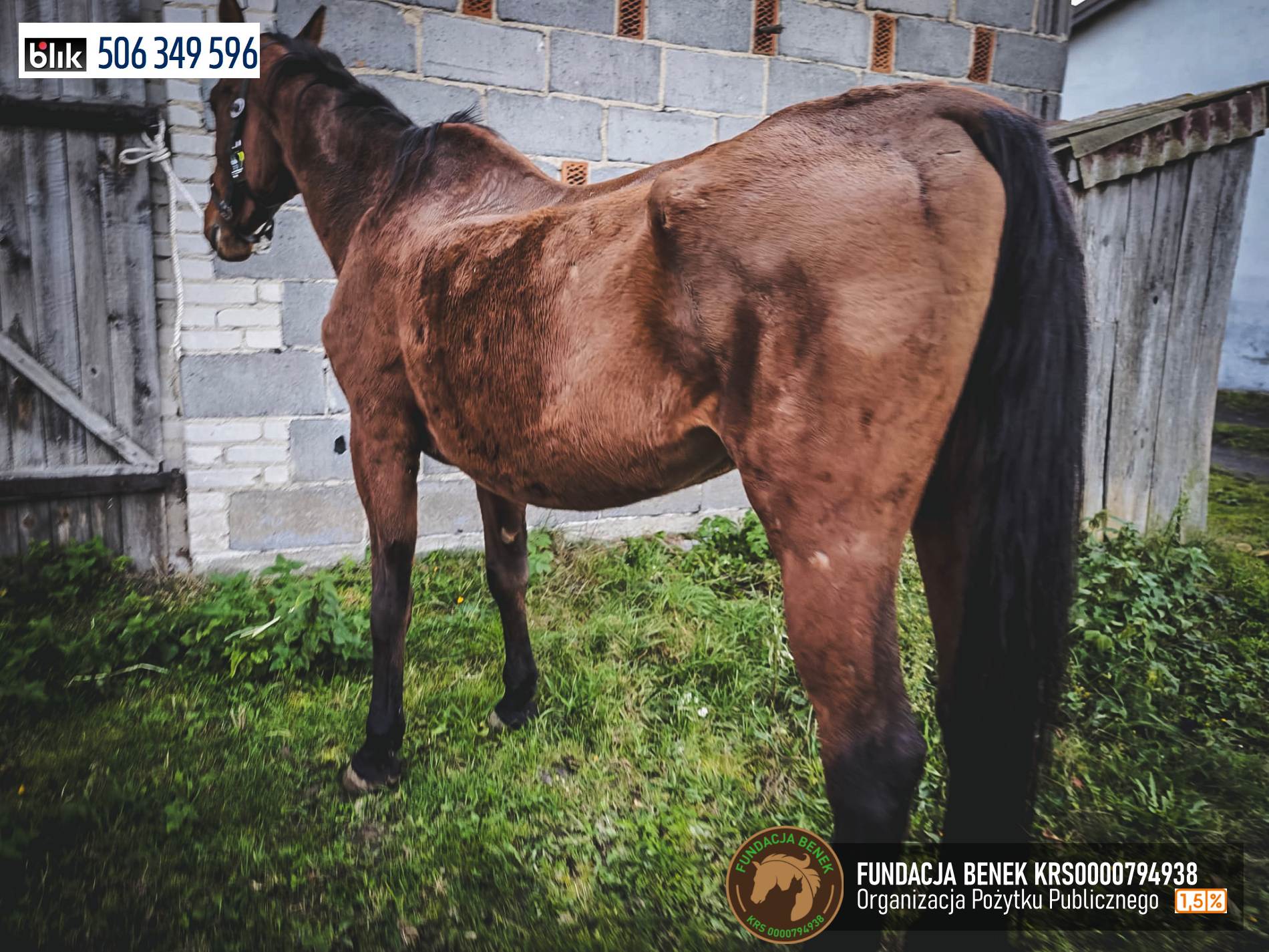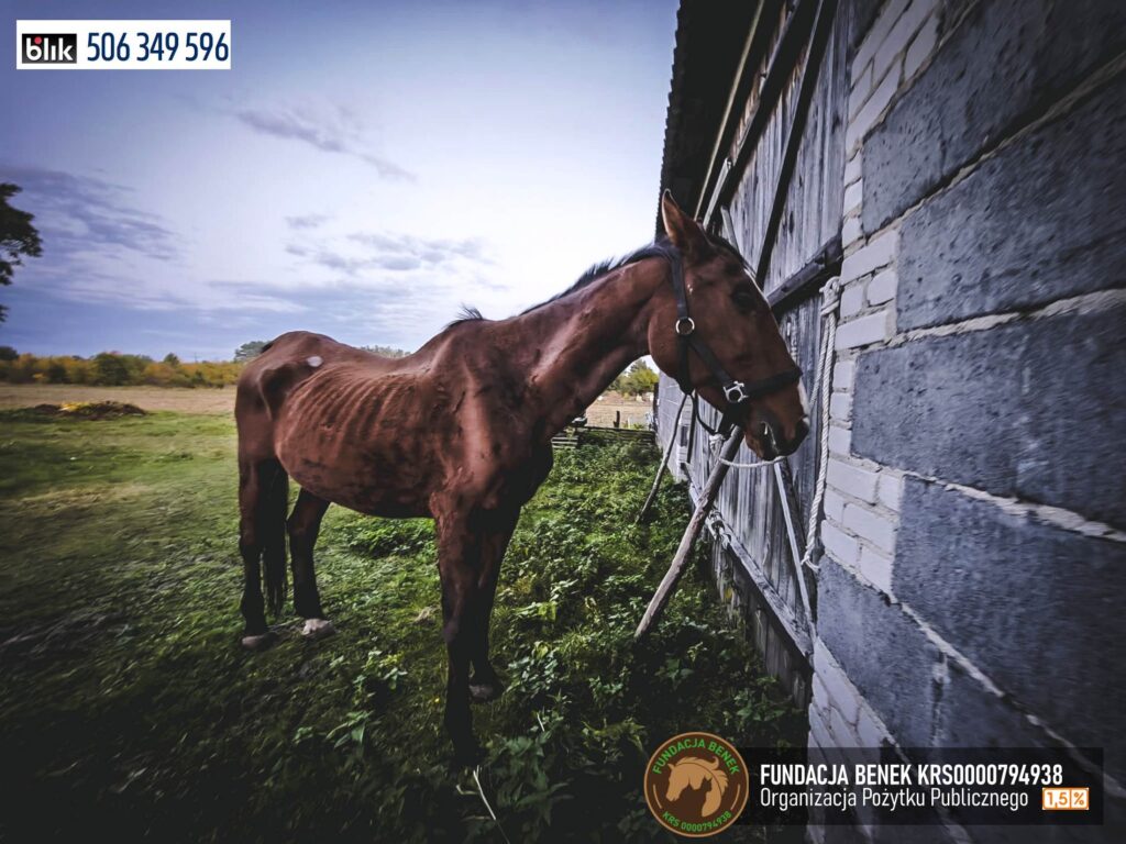 Kaja jest starym koniem, ma ponad 20 lat, co w zestawieniu z wyniszczającą chorobą sprawia, że mimo karmienia wygląda źle. Jej właścicielom, którzy latami czerpali zyski z jej pracy, nie przyszło już do głowy, żeby odstawić Kaję od pracy, zaopiekować się nią w najlepszy możliwy sposób i dać jej spokojnie dożyć swoich dni w „domu”. Zostawili ją wtedy, gdy najbardziej ich potrzebowała.