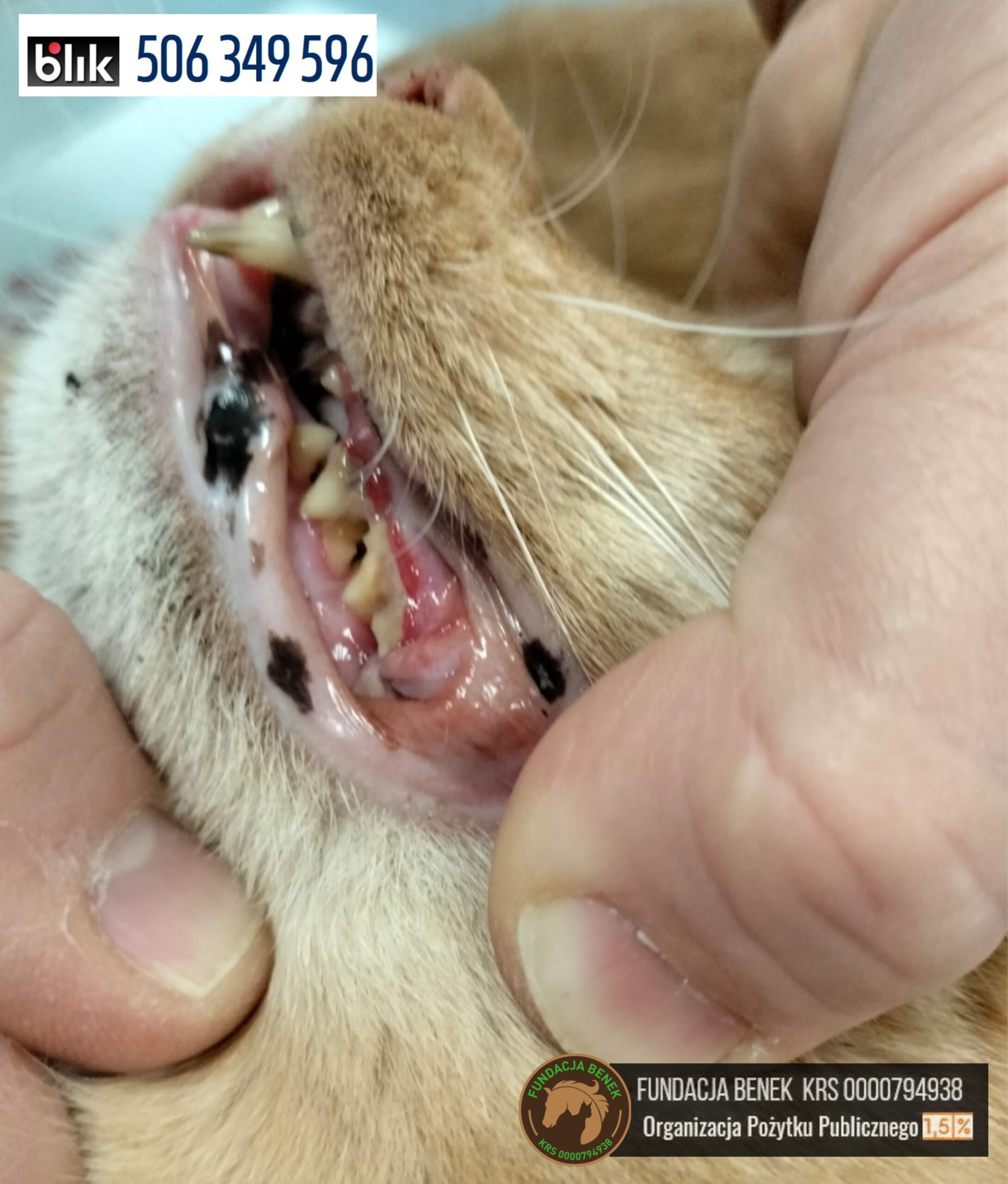 Zapomniałam napisać, że Maciuś dodatkowo ma ostre plazmocytarne zapalenie dziąseł i niestety będzie musiał mieć zabieg usunięcia kamienia i części ząbków. Ma ta chorobę od samego początku, jak go znaleźliśmy w lesie, gdy miał około 4 tygodnie. Pierwszy zabieg miał gdy miał około 3 miesięcy