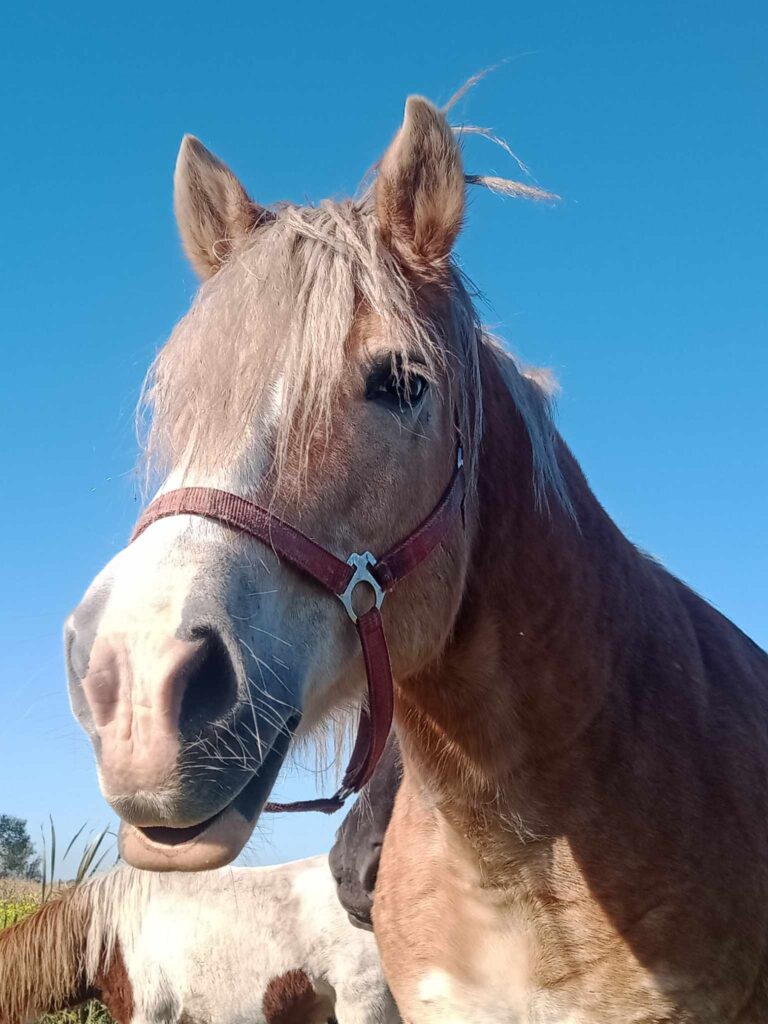 jak ten czas leci, nie nadążam czasami. Czy pamiętacie Jabłonkę? Starszą klacz, obecnie ponad 20letnią, która całe swoje życie służyła człowiekowi, a ten ją zawiódł. Ale wy nie zawiedliście i ją uratowaliście! Po kwarantannie dołączyła do stada, a w grudniu 2022 roku pojechała do adopcji realnej. Nie pojechała sama, towarzyszył jej Łatek, zwany w adopcji Szymkiem. Łatka ocaliliście kilka miesięcy wcześniej. Był w zamkniętej komórce, handlarz kupił go pierwotnie dla prywatnego kupca, ten jednak zrezygnował, bo Łatek kaszlał. Był wtedy raptem rocznym dzieciakiem.