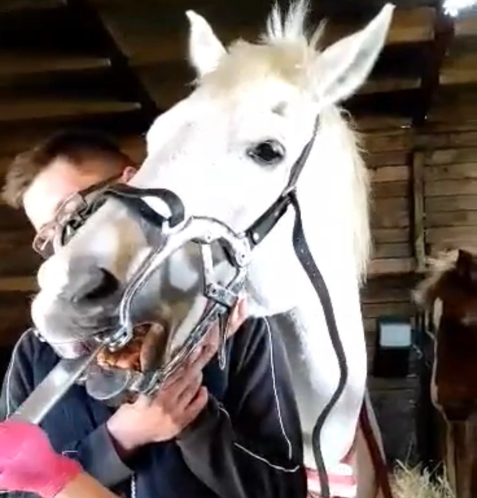 Zen to koń, który znalazł wspaniały dom adopcyjny i ma zapewnioną doskonałą opiekę. W tą opiekę wchodzą również wizyty końskiego dentysty, który co jakiś czas powinien sprawdzać stan uzębienia. Konie rozcierają jedzenie w pysku, dlatego ich szczęki przylegają prawie gładko do siebie. Przez ruch na boki pokarm jest rozdrabniany. Problem polega na tym, że zęby leżące naprzeciwko siebie nie pokrywają się idealnie i w wyniku tego powstają ostre krawędzie. W późniejszym stadium ranią one policzki konia. Tworzą się także przerwy między zębami, które mogą doprowadzić do zakażeń i stanu zapalnego w pysku. Żeby tego uniknąć tarnikuje się specjalnym pilnikiem ostre krawędzie zębów. Ten zabieg, nazywany tarnikowaniem jest bezbolesny dla konia. Ale wiadomo, że nikt nie lubi chodzić do dentysty.