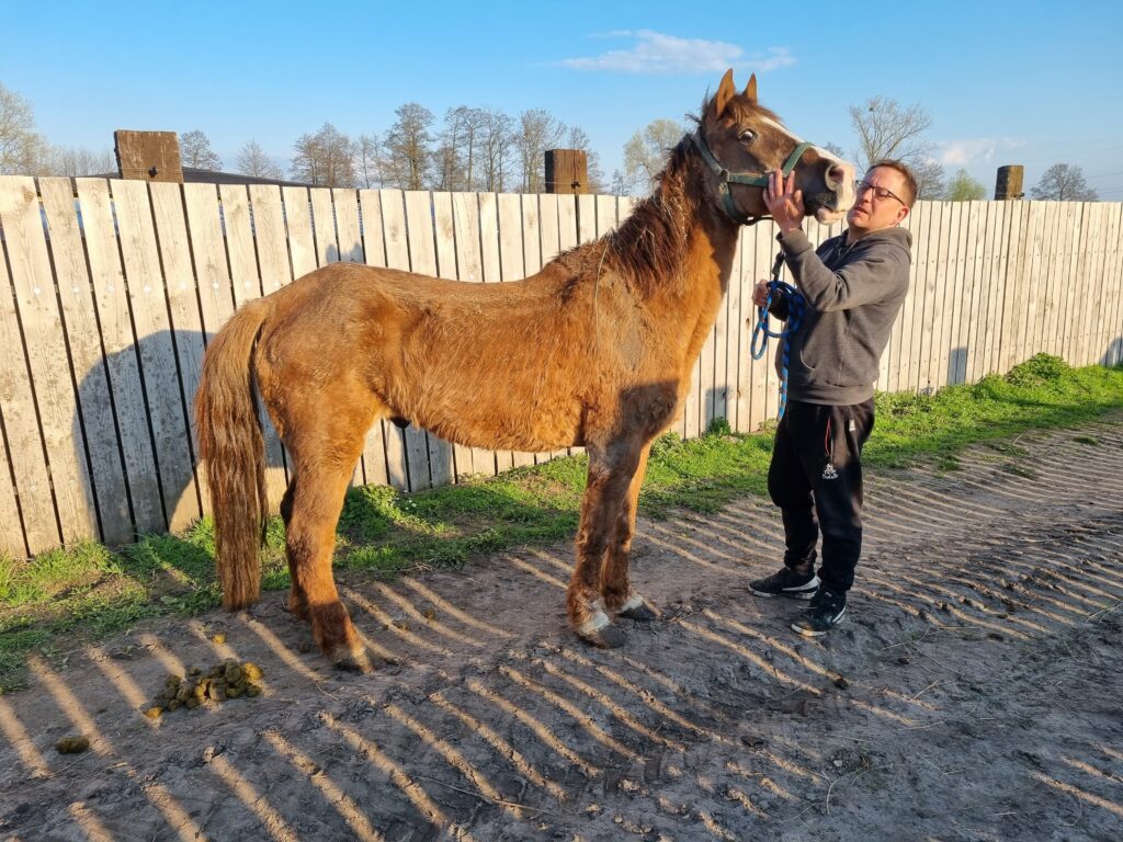 Pomoc od Was otrzymał staruszek Bohun. Koń jest w naszym ośrodku w Szewcach koło Poznania, gdzie aktualnie przechodzi kwarantannę. Przed nim wizyta kowala i weterynarza, którzy ocenią jego stan zdrowia. Bohun to koń zniszczony i spracowany, któremu za lata pracy i wożenia ludzi podziękowano, wysyłając go na rzeź. Koń pracował w rekreacji, szkoląc na swoim grzbiecie adeptów jeździectwa. Jest to niestety powszechna praktyka, że te zwierzęta, które nie przynoszą już zysku, są zabijane. Nie trzeba ich dalej karmić, bo to kosztuje. Można jeszcze zarobić sprzedając konia na rzeź.